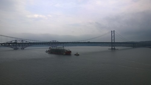 But among all these impressive and cumulative feats, this week’s milestone felt that little bit special. It’s the moment when the sheer scale of this project became real. Not many of us will ever get to see the towers up close but, for the moment at least, it’s only then that their size really hits home. But when the ship arrived on Monday (May 19) and made its way under the rail and road bridges during evening rush hour, you couldn’t miss the scale. Some of us watched it from North Queensferry, from the Forth Road Bridge in our cars or the east walkway; project staff had their cameras on the roof of the project office. Others had an amazing perch at the top of the Centre Tower …