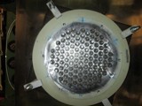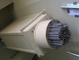 As the reinforced concrete stitch is being poured, the stay cables have to be prepared. The cables are one of the signature features of the Queensferry Crossing design. They consist of a bundle of strands (a varying number depending on location - up to 109 for the largest cables) which are threaded through an external, white pipe (essentially a covering or sleeve). Each strand is made up of seven high tensile, galvanised steel wires, 5.2 millimetres in diameter. Six of the wires, coated in wax, are wound in a helix pattern round a straight central king wire. The strands are each contained in a high density polyethylene (HDPE) coating. The external white pipe is cut to the correct length and a single strand is threaded through. The pipe is then lifted off the deck and into position at the tower anchor box using the enormous, yellow Tower Crane.