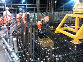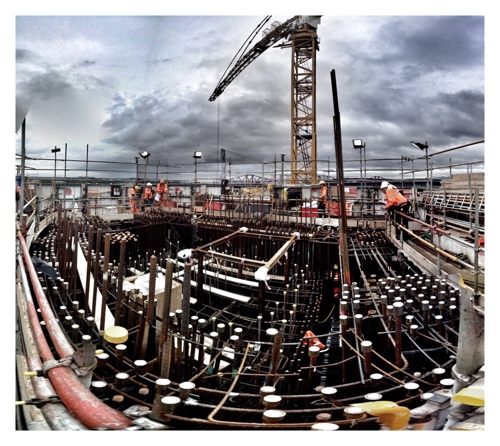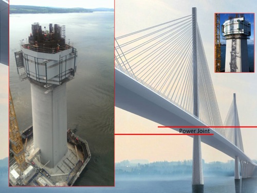 Now the “powerjoint” is complete on the Central Tower, regular lifts and concrete pours will continue to raise it to its eventual 210m height, while temporary steel trestles and platforms are erected to assist with the first deck units being installed. A huge floating crane will soon be out in the Forth to assist. Watch this space...